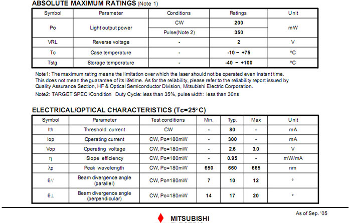 - :: 660nm 200mW Laser diode high power semiconductor laser tube ML101J29-G