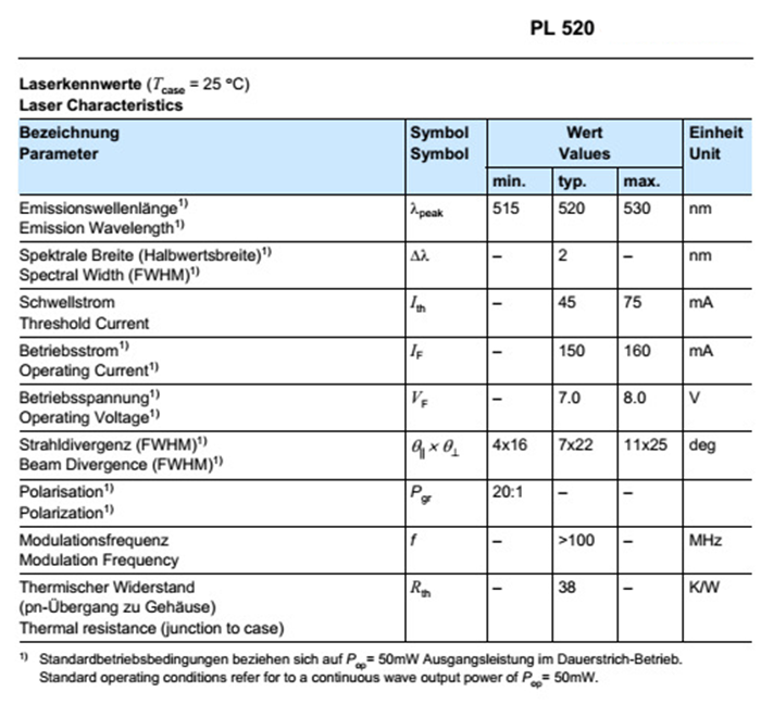 - :: Osram 520nm 50mW Green Laser Diode TO38