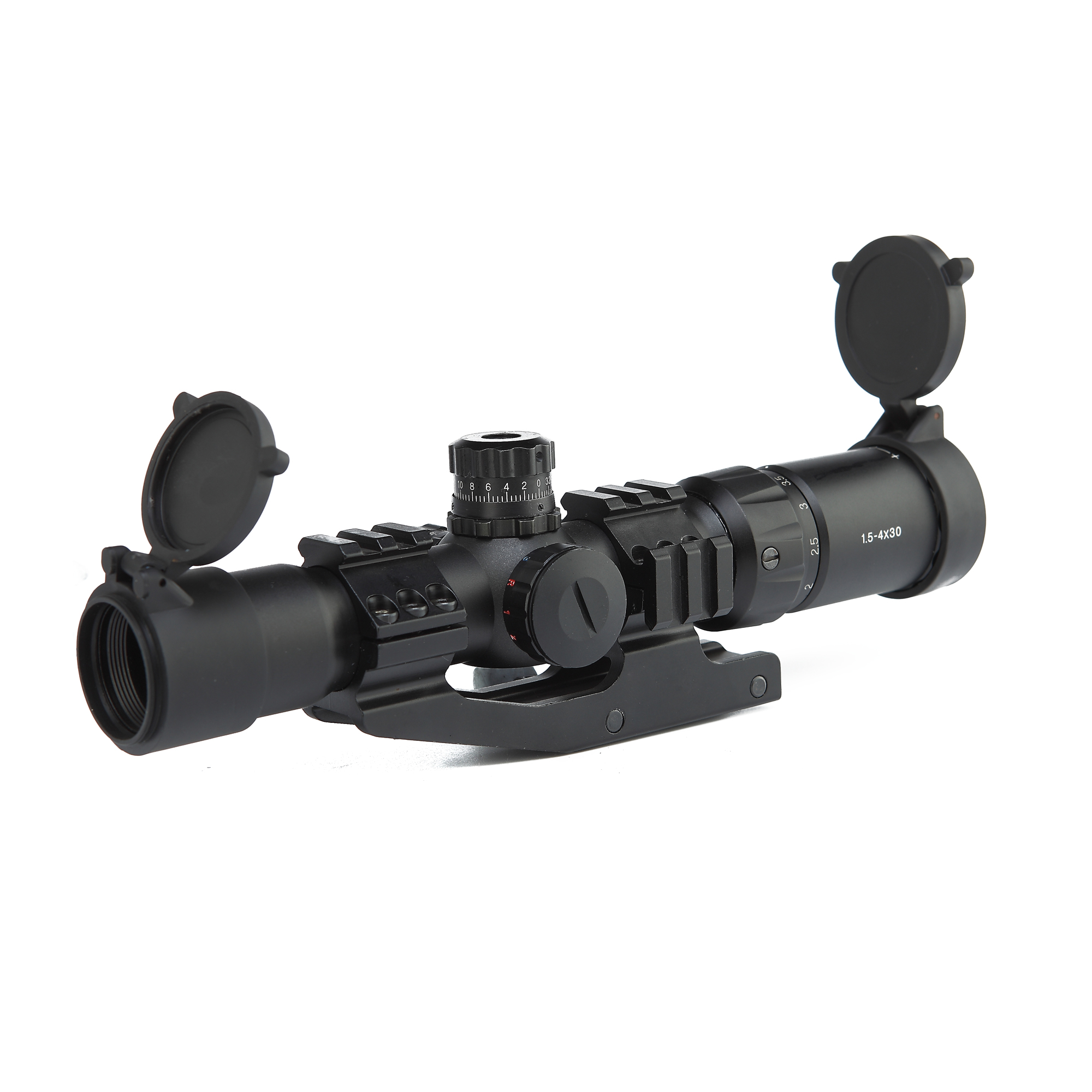Tri-illuminated (Red, Green, Blue)Reticle with adjustable rheosat for brightness control