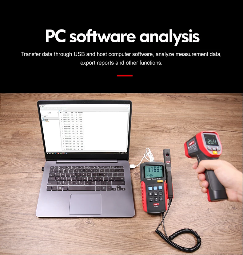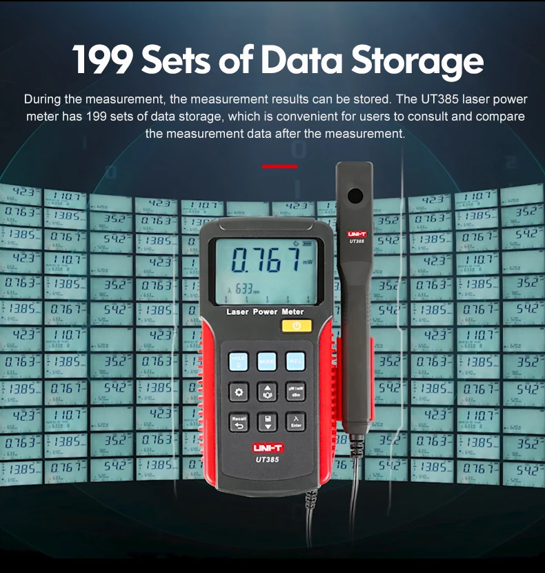UT385 Laser power meter is used to measure the energy output of laser beams for testing or laser system applications. It uses detection sensor to determine the intensity of a laser beam energy output.