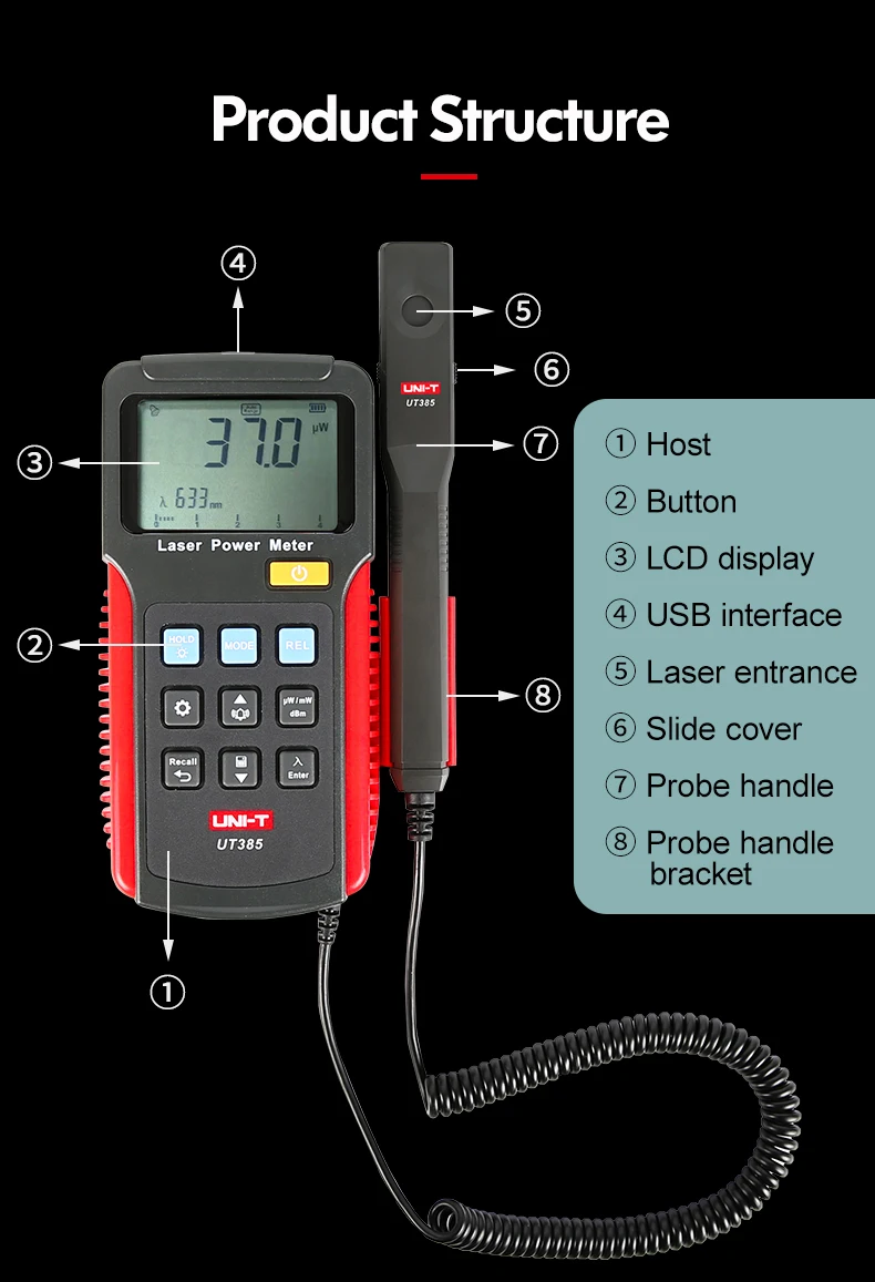 UNI-T Laser Power Meter UT385 Precision Sensor Power Analyzer Tester LCD Screen Display