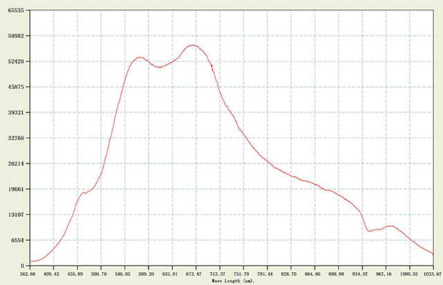 The following picture shows the use of the economic fiber-optic light source spectrum measured in the under JA2000 type spectrometer A (integrating sphere 300mm), with the mercury lamp spectrum.
